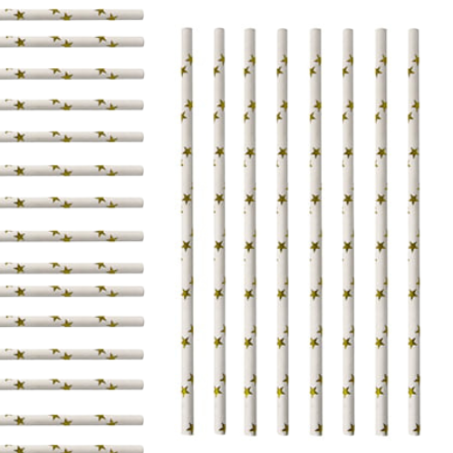 Zestaw 100 białych słomek papierowych w gwiazdki